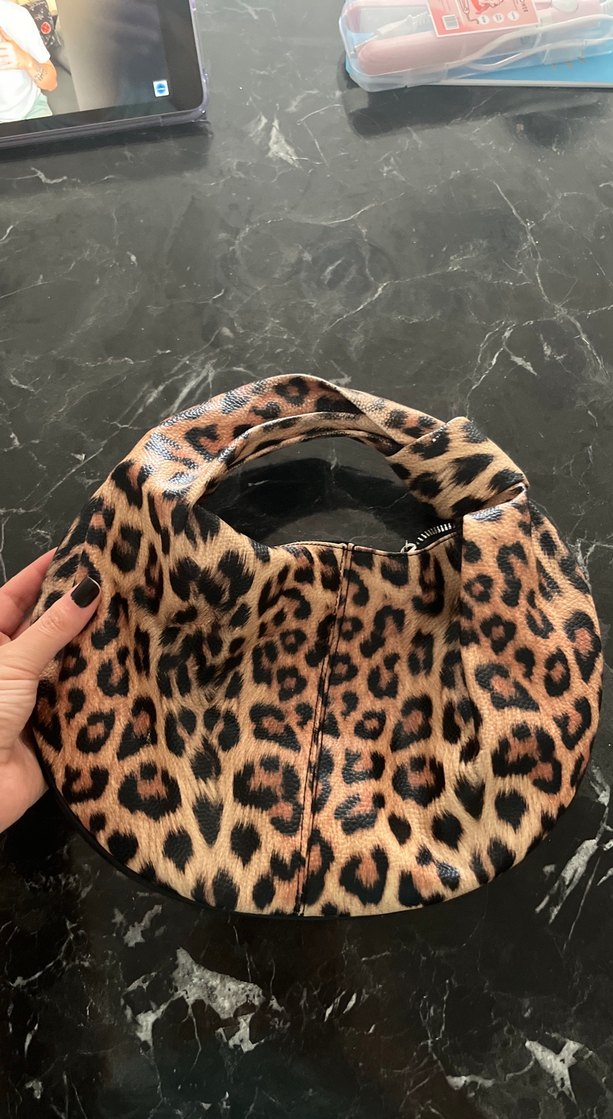 Kahverengi deri, leopar desenli ve kürklü detaylara sahip kadın çantası. Yuvarlak formda, günlük ve sokak stiline uygun. 1 defa kullandım. Yenidir.