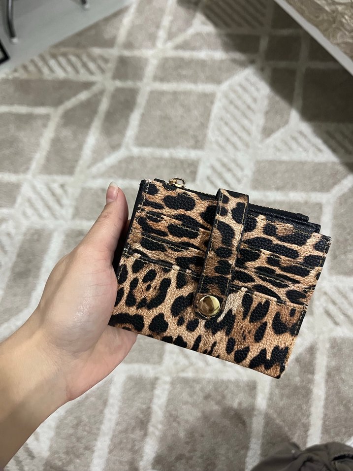 Kahverengi Leopar Desenli Kadın Deri Cüzdan