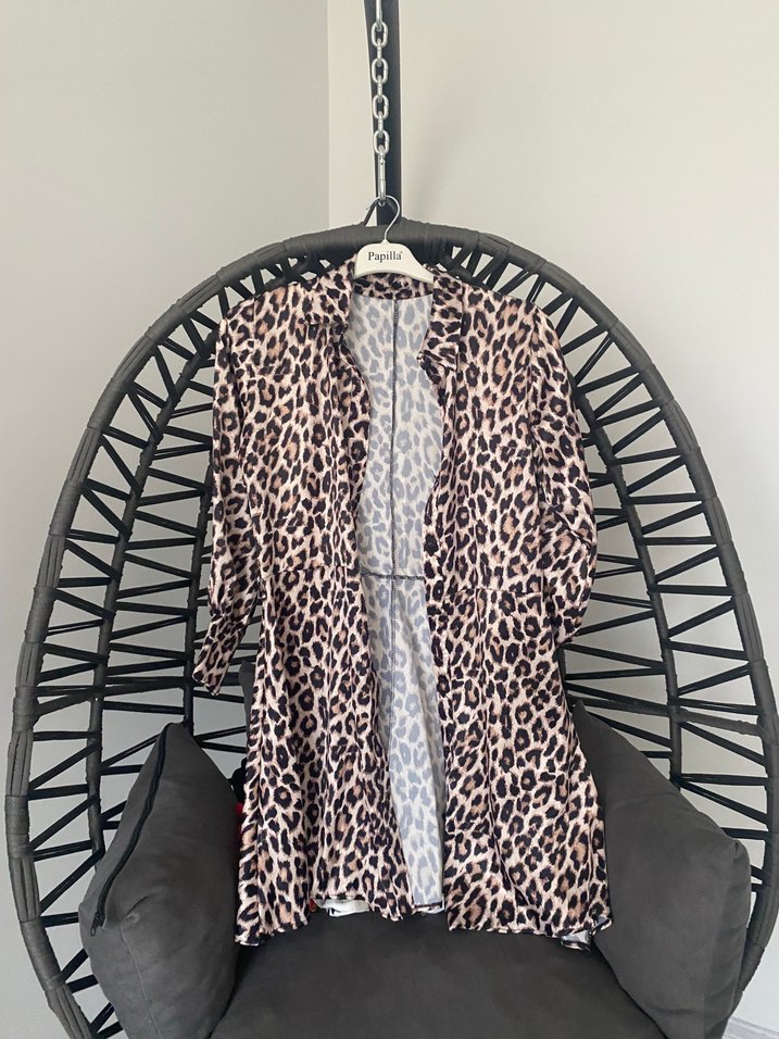 Kahverengi leopar desenli elbise. Gömlek olarak da kullanılabilir.
