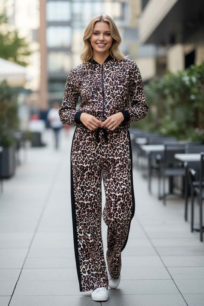 Kahverengi Leopar Desenli Kadın Eşofman Takımı