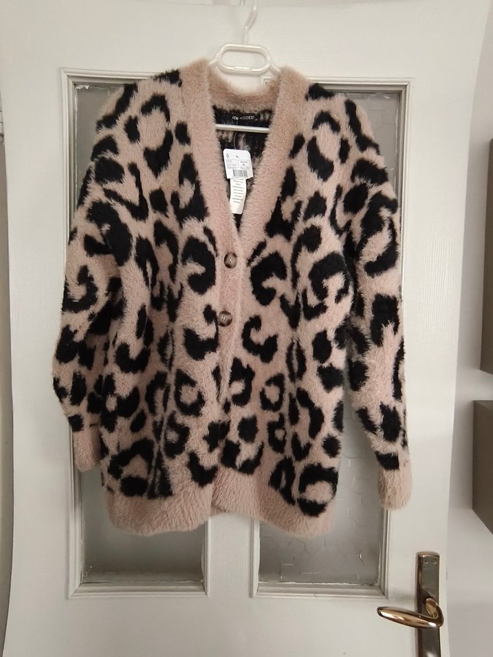 Kahverengi Leopar Desenli Kadın Hırka