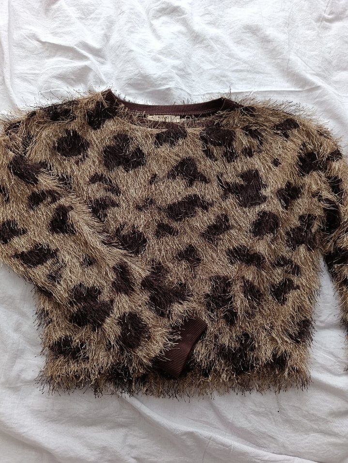 Kahverengi Leopar Desenli Kadın Kazak