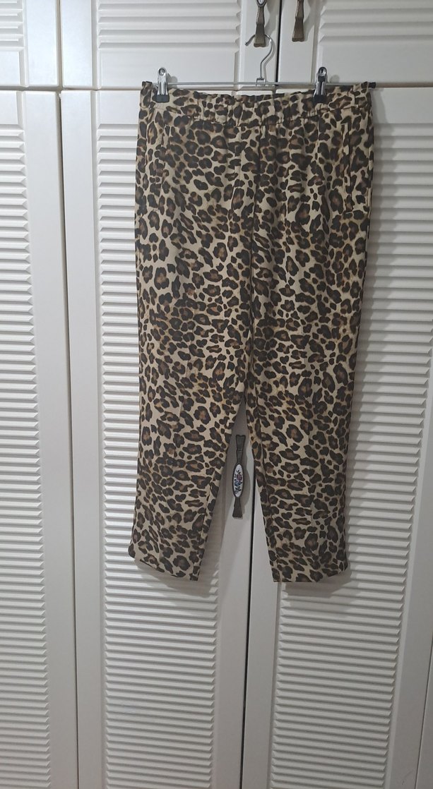 Kahverengi leopar desenli, bol kesim midi uzunluğunda, yumuşak sentetik kumaştan yapılmış kadın pantolonu, Trendy günlük dış mekan kullanımı için uygundur.