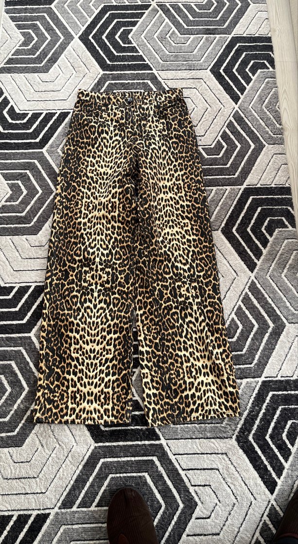 Kahverengi leopar desenli, uzun, regular fit kadın Jean pantolon