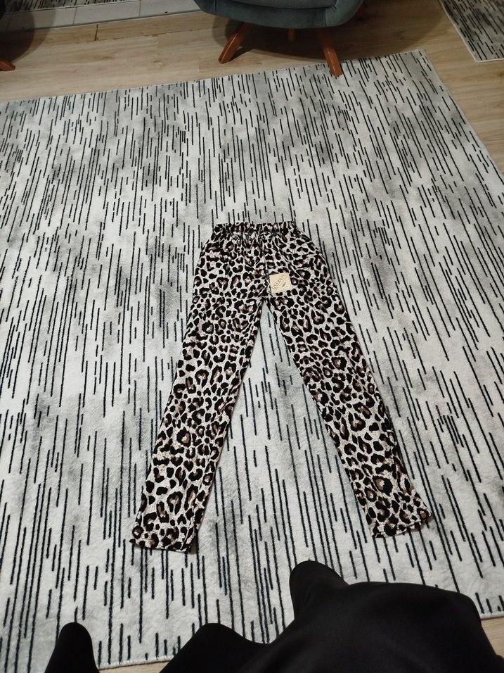 Koyu kahverengi leopar desenli, sentetik kumaştan kadın pijama altı