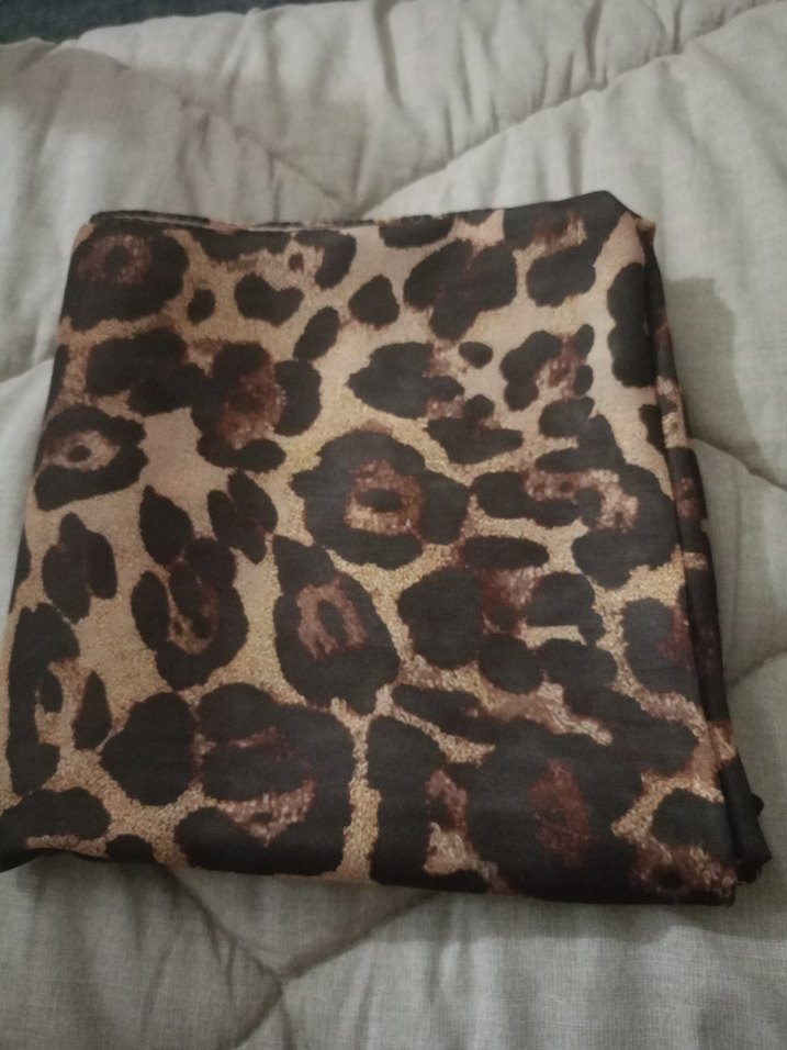 Yumuşak sentetik kumaştan, kahverengi leopar desenli, bohem ve retro tarzlara uygun drapeli kadın şal,fular.