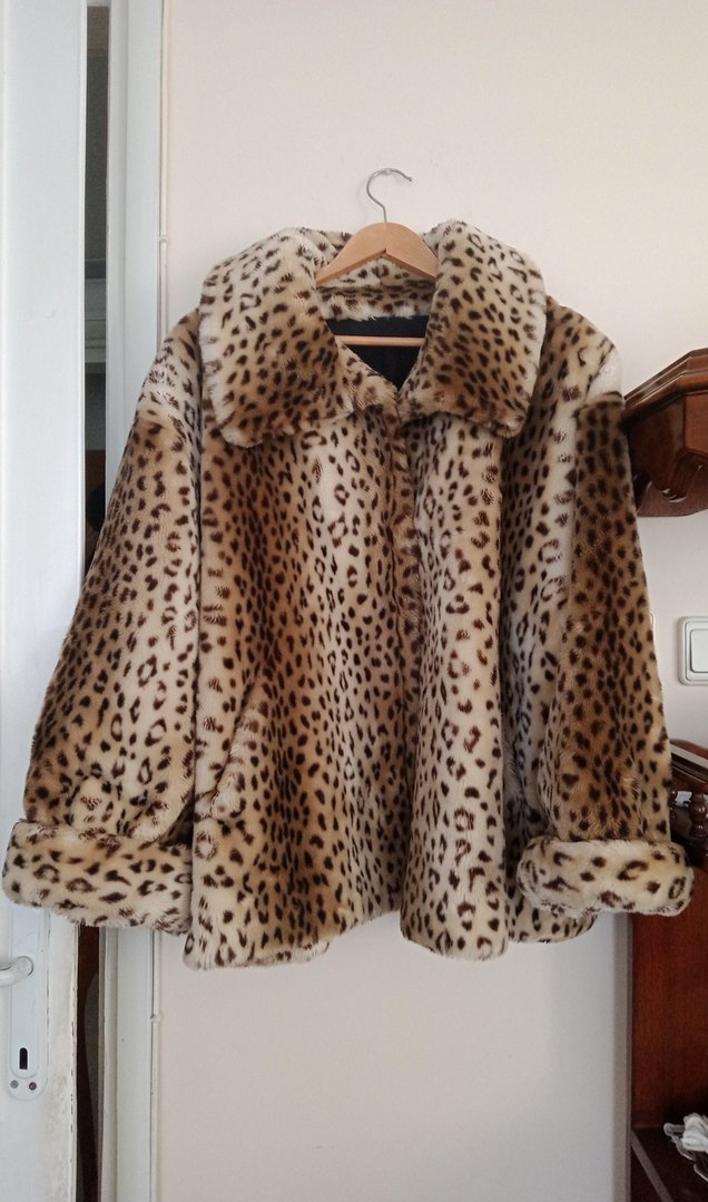 Kahverengi leopar desenli suni kürk ceket, notlu yaka ve uzun kollu, bol kesim ve midi boydadır. Parlak sentetik kumaşı günlük sokak stiline uygundur. pazarlık yapılmaz.gercek alıcılar arasın