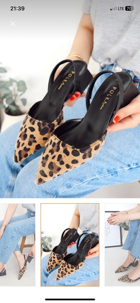 Kahverengi leopar desenli, kürk detaylı kadın topuklu ayakkabılar. Kauçuk malzemeden üretilmiş, günlük kullanıma uygun modern ve şık bir model.