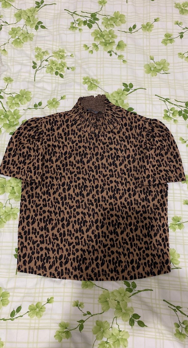 Kahverengi leopar desenli, kısa kollu, boğazlı ve fırfırlı detaylı, trend sokak tarzına uygun . Şık ve rahat bluz Az kullanılmış, temiz ve sorunsuzdur. Kumaşı yumuşak, günlük ve özel günlerde rahatlıkla kullanılabilir. Beden: M Sorularınız için mesaj atabilirsiniz