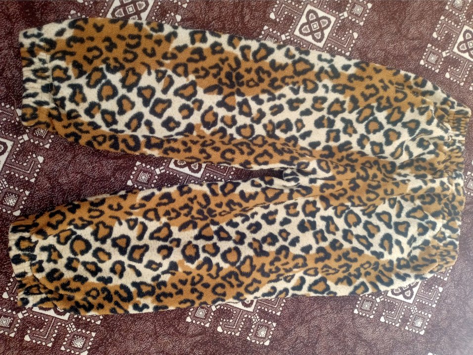 Yumuşak kumaştan yapılmış, kahverengi leopar desenli polar alt bilek kısmı lastikli sorunsuz