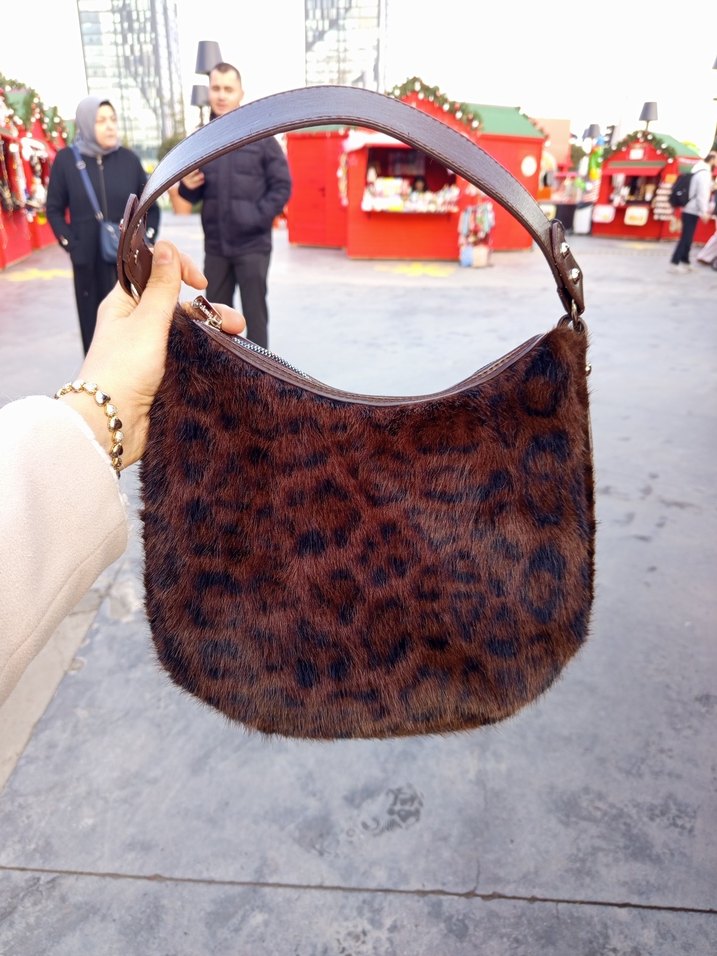 Kahverengi Leopar Desenli Kürklü Kadın Çanta(ıcı astarlı)