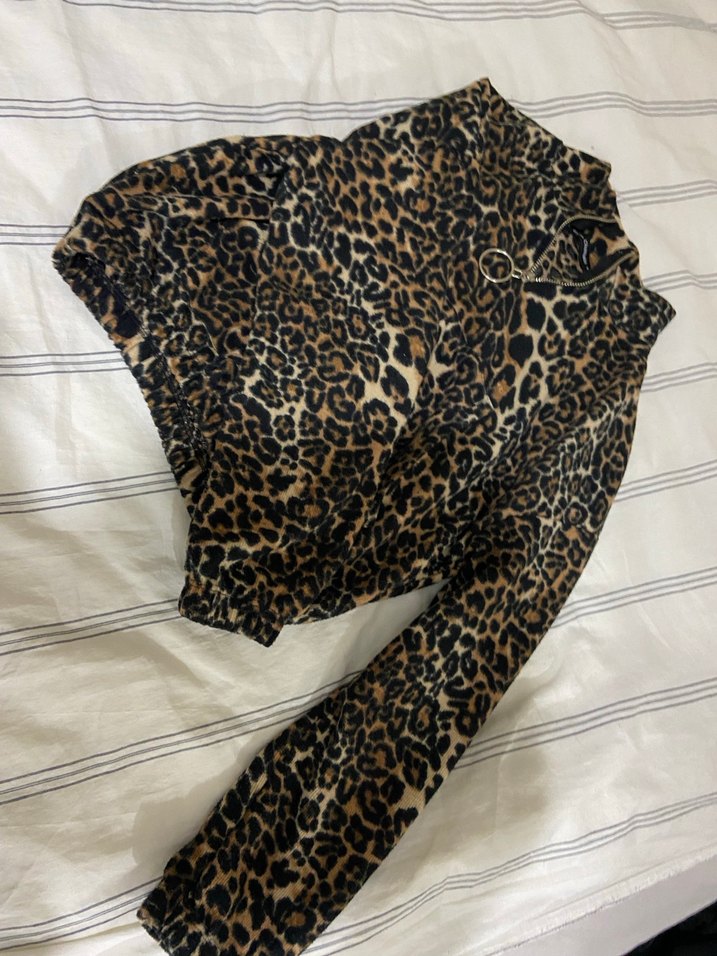Kahverengi leopar desenli, kürk detaylı sokak stili kedi kıyafeti.