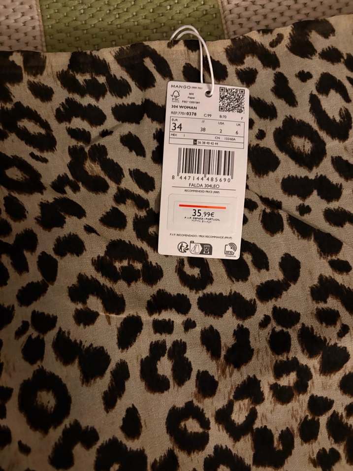 Leopar desenli, etiketi üzerinde, Mango marka etek.