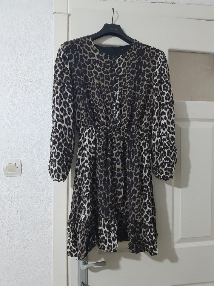 Kahverengi Leopar Desenli Midi Elbise