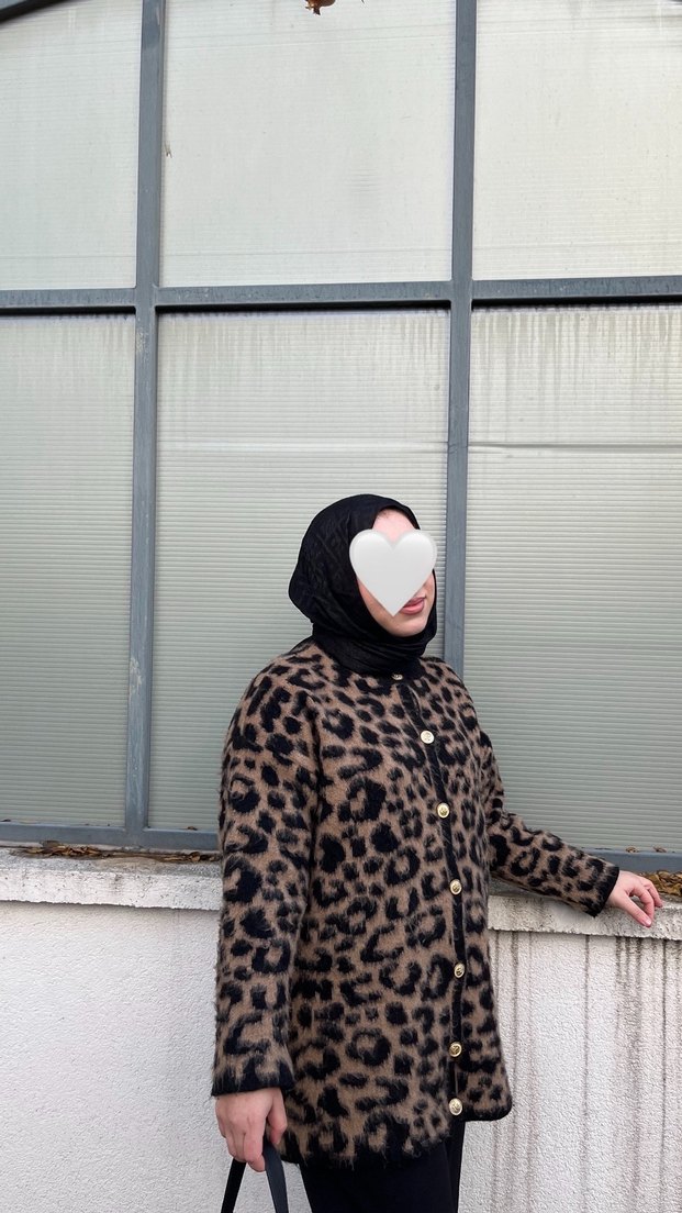 Kahverengi Leopar Desenli Midi Kadın Kaban