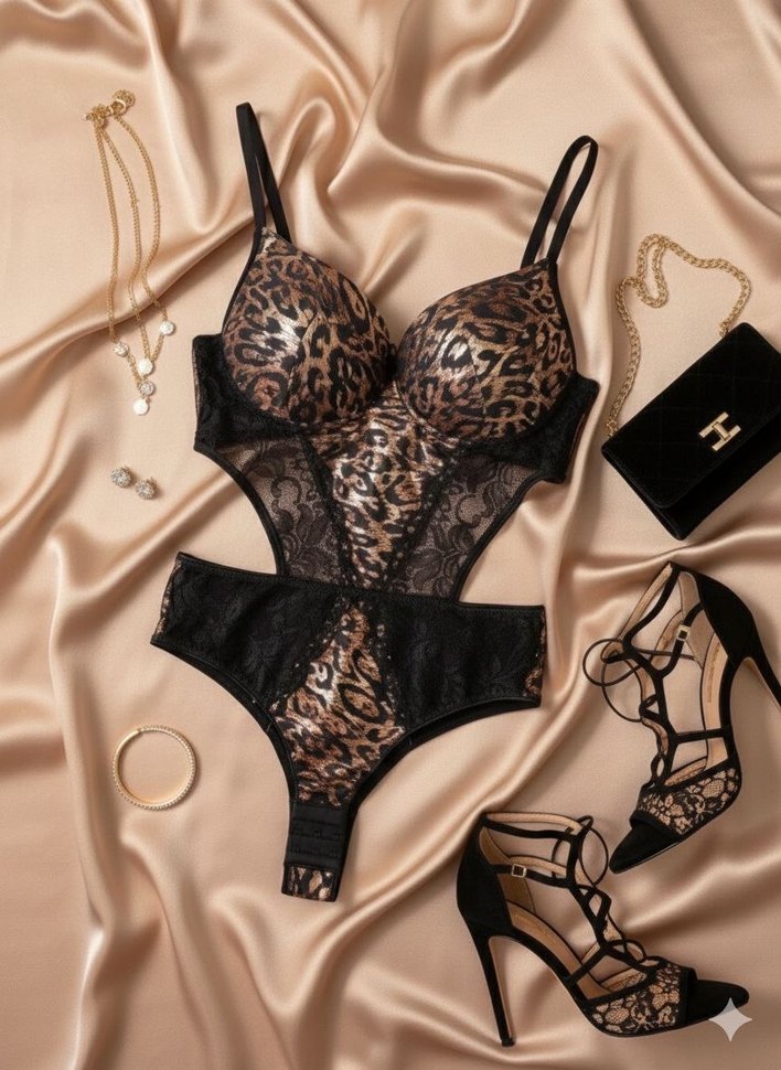 Kahverengi leopar desenli, siyah dantel detaylı bodysuit Ayarlanabilir askılar ve vücuda oturan tasarım içerir. İlan açtırarak alabilirsiniz 75,80 85 90 bedenleri vardır..
