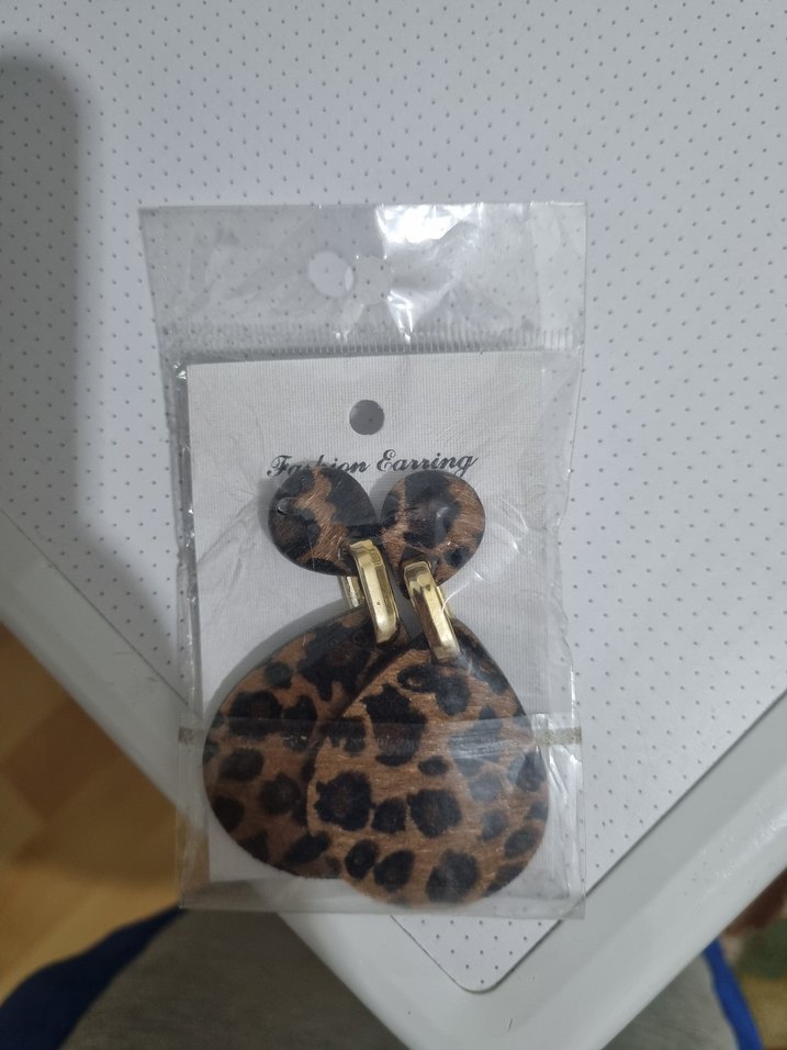 Kahverengi leopar desenli küpe