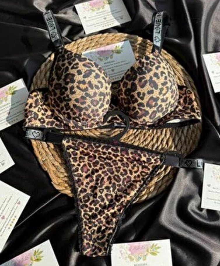 Kahverengi leopar desenli mini sütyen takımı, ayarlanabilir askılarla rahat ve sokak modasına uygun tarz sunar.