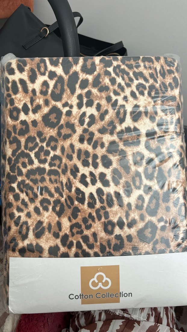 Kahverengi ve kahverenginin koyu tonlarında leopar desenli, yumuşak pamuk kumaştan nevresim ve çarşaf takımı. ️