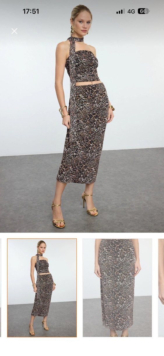Kahverengi Leopar Desenli Payetli Uzun Etek
