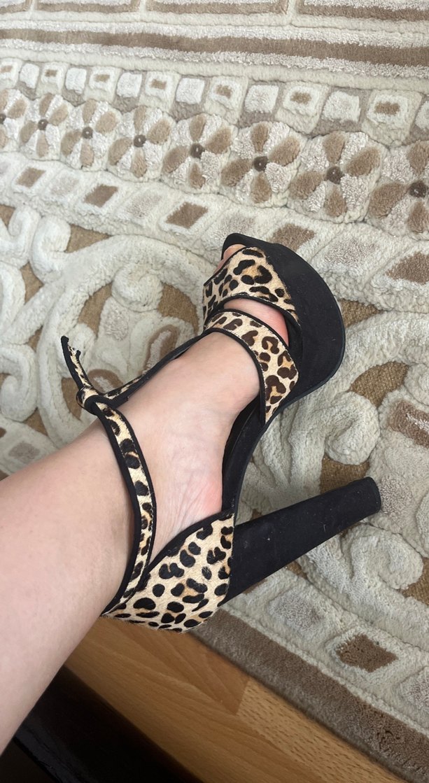 Ürün yeni Kahverengi leopar desenli, kürklü platform topuklu ayakkabı. Kauçuk tabanlı, cesur ve rahat bohem tarzıyla günlük kullanım için uygun.