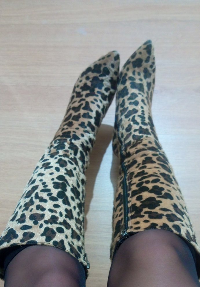 Süet leopar desenli topuklu çizme