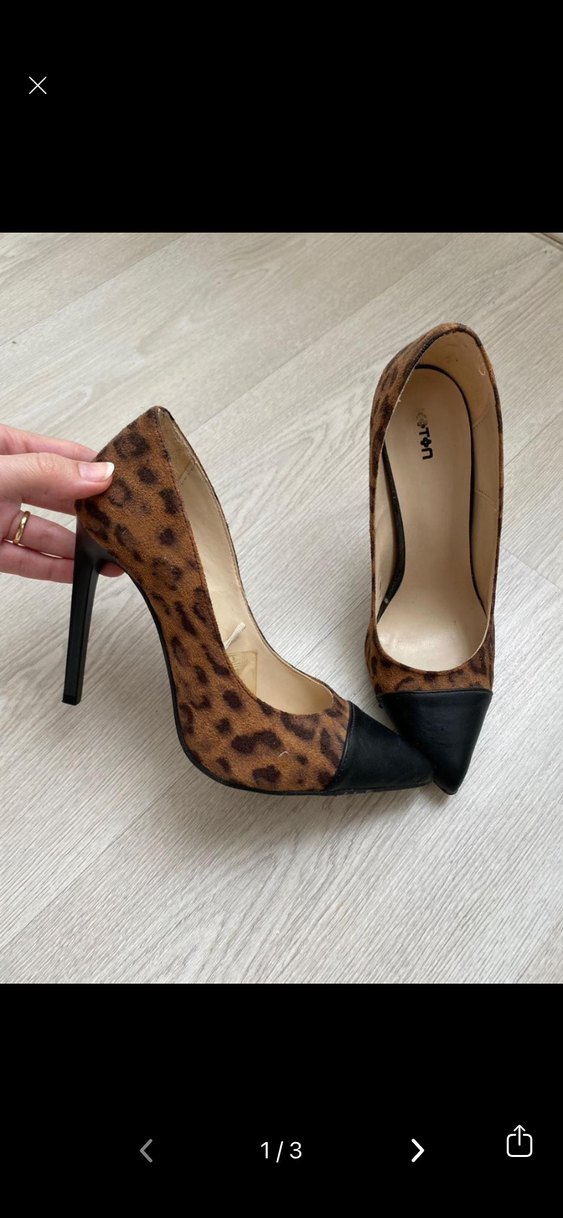 36 numara ön kısmı deri leopar kısmı süet topuklu ayakkabı. Çok az giyildi çok iyi durumda