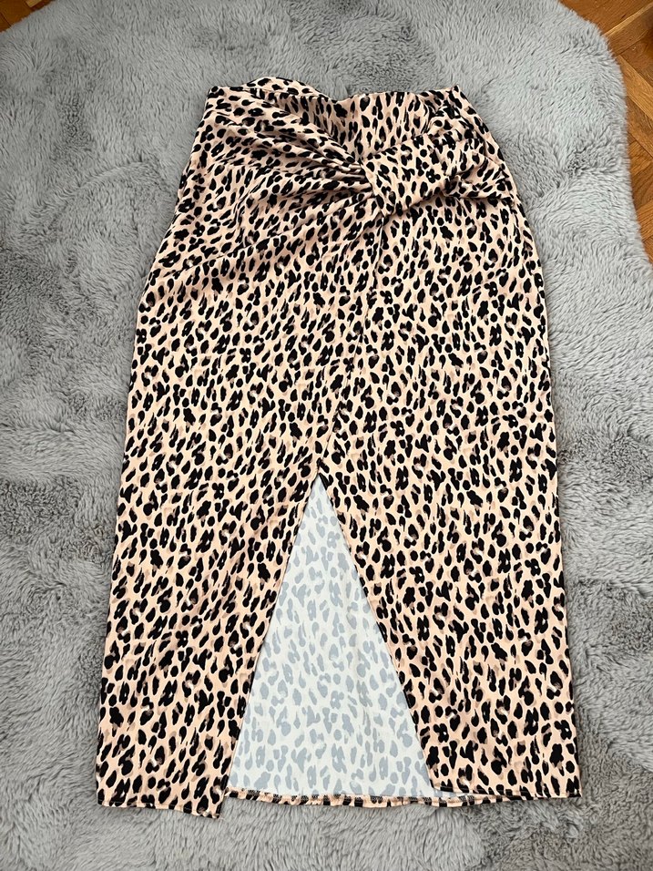 Kahverengi Leopar Desenli Uzun Kadın Etek