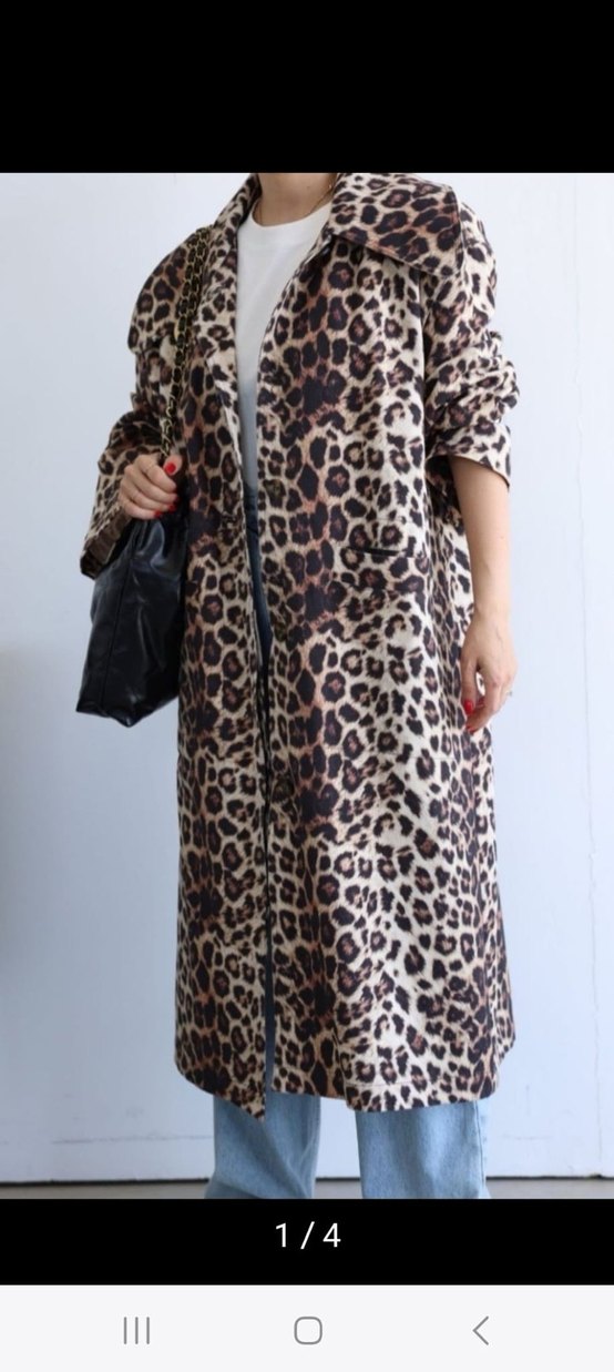 Kahverengi Leopar Desenli Uzun Kadın Kaban