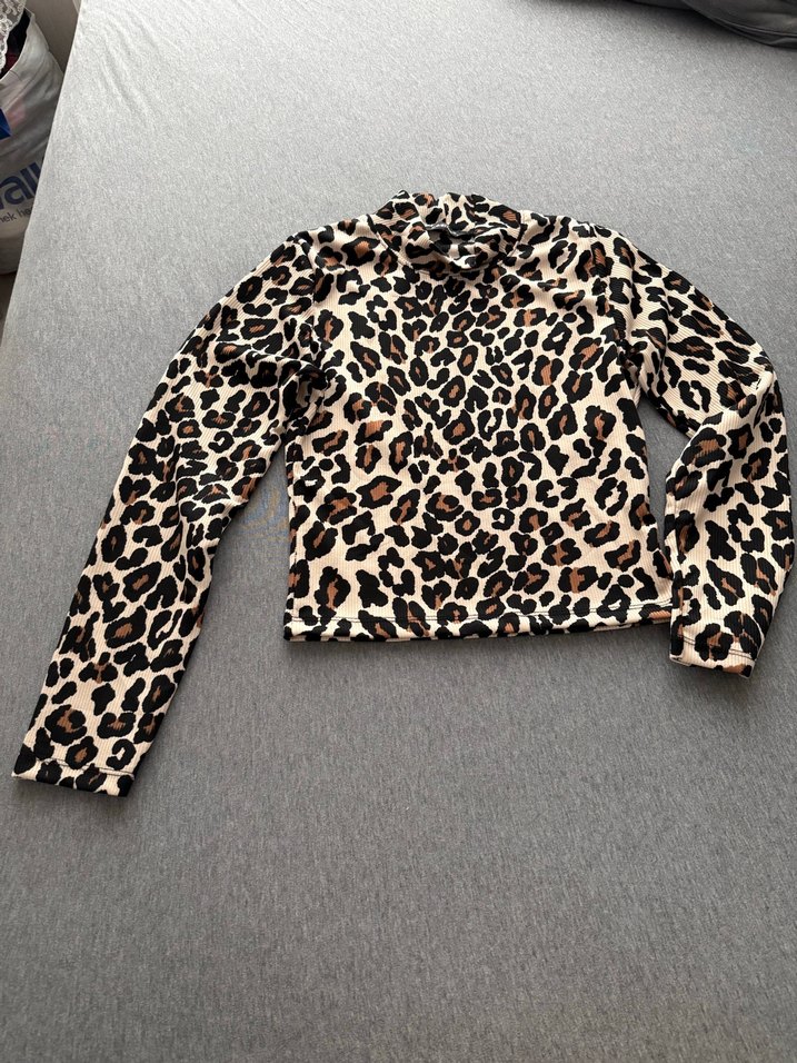 Kahverengi Leopar Desenli Uzun Kollu Bluz