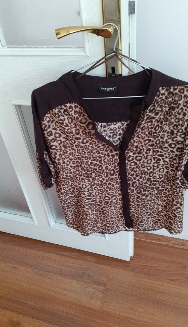 Kahverengi Leopar Desenli V Yaka Kadın Bluz