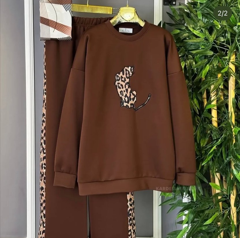 Kahverengi Leopar Detaylı Kadın Sweatshirt