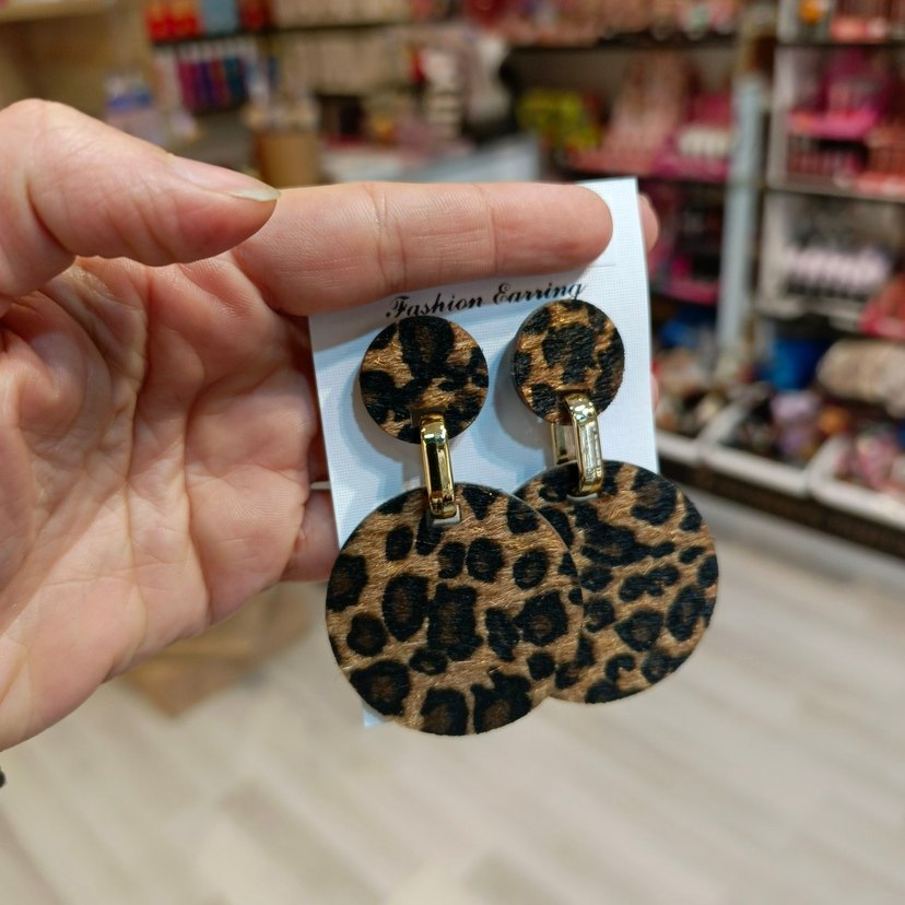 Kahverengi leopar desenli, küpe sıfır ürün