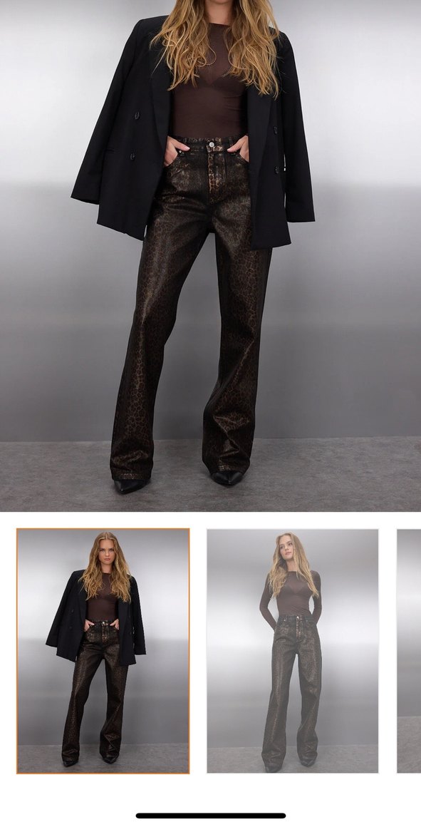 Trendyol Milla nın Limited Edition Serisinden, Kahverengi Leopar Varak Baskılı Yüksek Bel Wide Leg Jeans