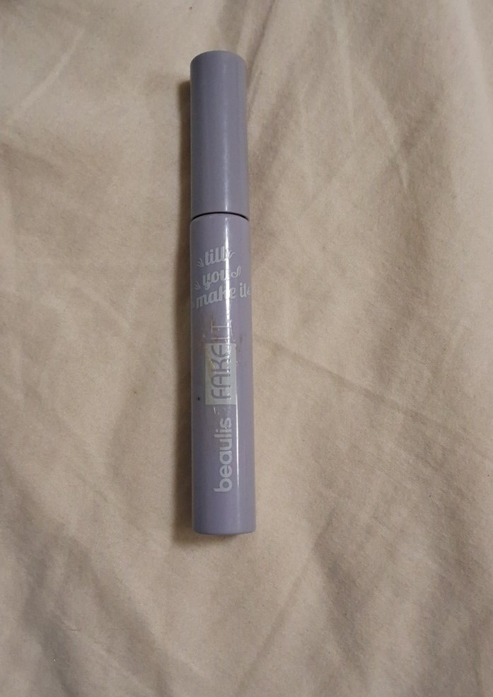 Gri tüpte, bej yazılı maskara, kirpikleri hafifçe renklendirir.