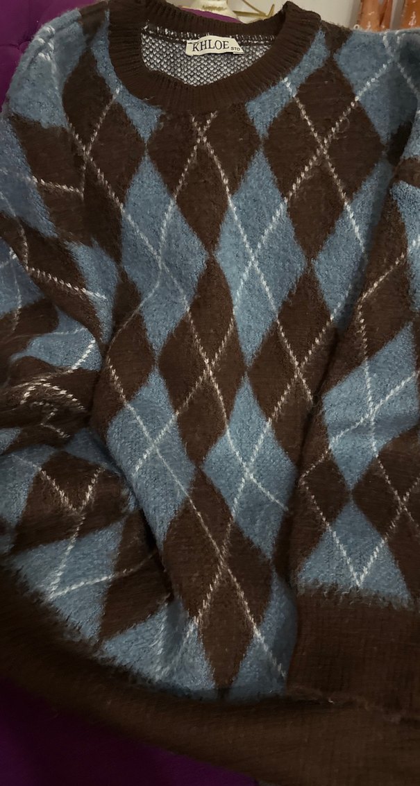 Kahverengi Mavi Ekose Örgü Kadın Kazak