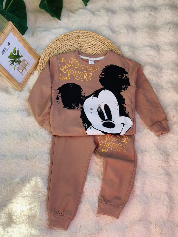 3-4-5-6-7 yaşlar mevcuttur sıfır mağaza ürünüdür hangi bedeni isdediğinizi belirtiniz.Koyu kahverengi, peluş detaylı ve baskılı Mickey Mouse figürlü, bol kesim erkek eşofman takımı, yumuşak ve sıcak kumaştan yapılmıştır.