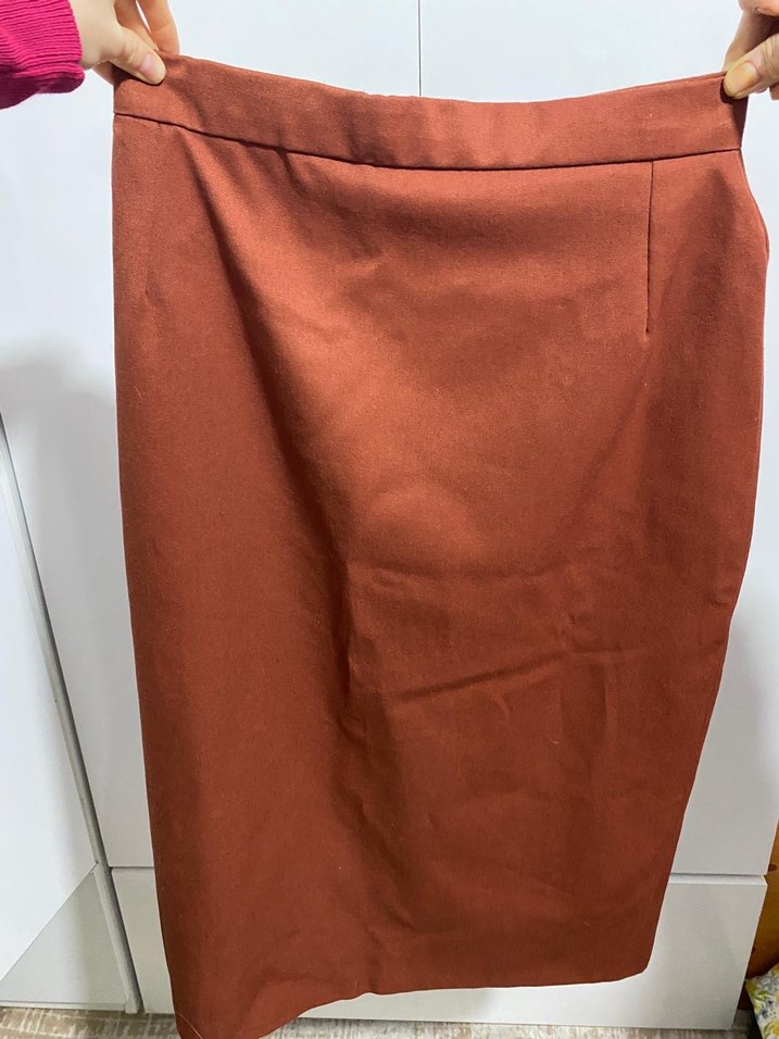 kahverengi etek, normal kesim ve sade minimalist tarzda, ofis kullanımı için ve günlük kullanım için uygundur.