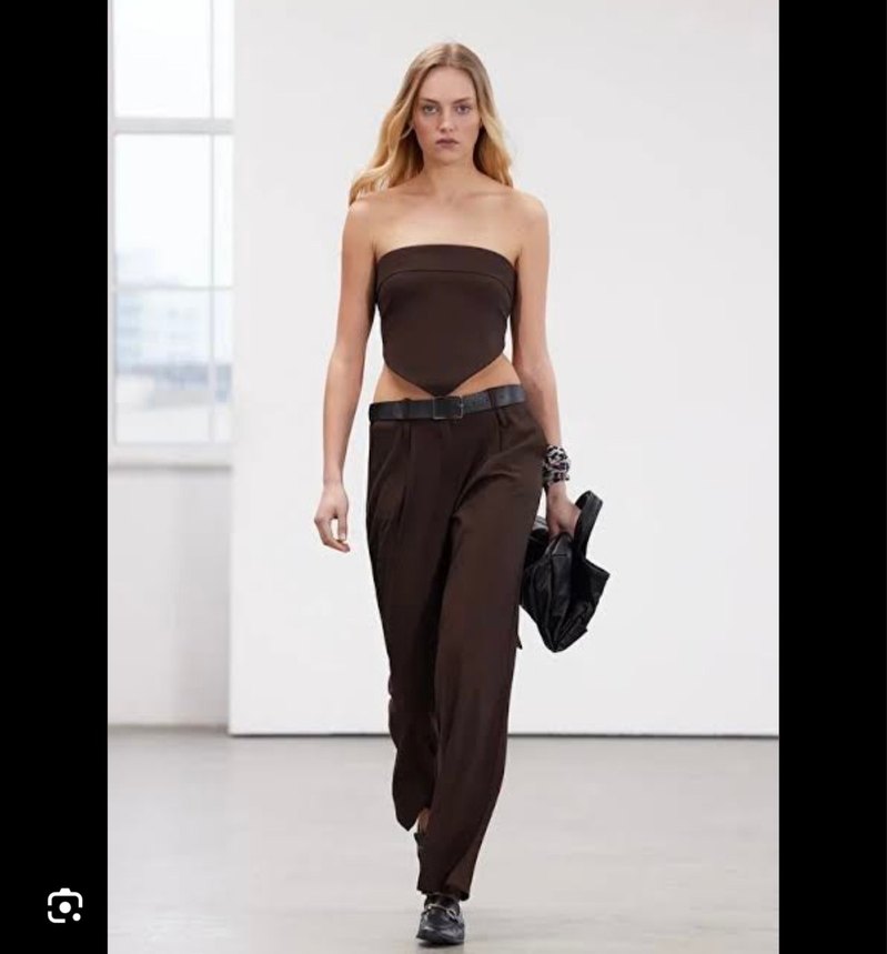 Koyu kahverengi, önden büyük fiyonk detaylı, vücuda oturan midi hemşire korsesi. Desensiz, şık ve sade tasarım.