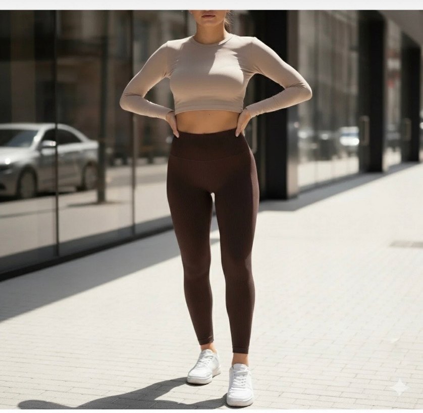 Yumuşak sentetik kumaştan üretilmiş kahverengi midi tayt, spor ve günlük kullanıma uygun şık ve rahat bir tasarıma sahiptir. ♀️