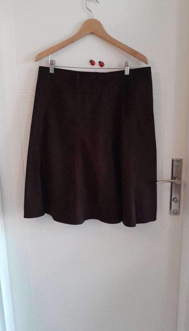 Kahverengi Midi fitilli kadife Etek