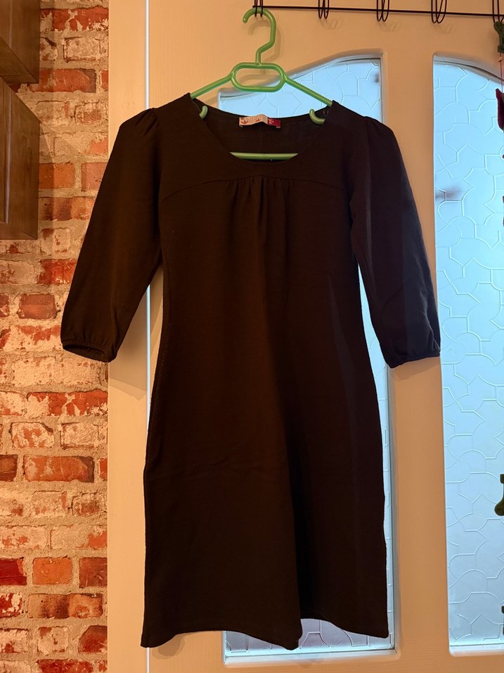 Kahverengi renkli, yarım kollu ve yuvarlak yakalı midi tunik veya kısa boylular için mini elbise. Rahat kesimi ve dökümlü tasarımıyla günlük kullanım için ideal, triko kumaştan. Hafif tüylenmeleri var. Fotoğraflarda belirtildi.
