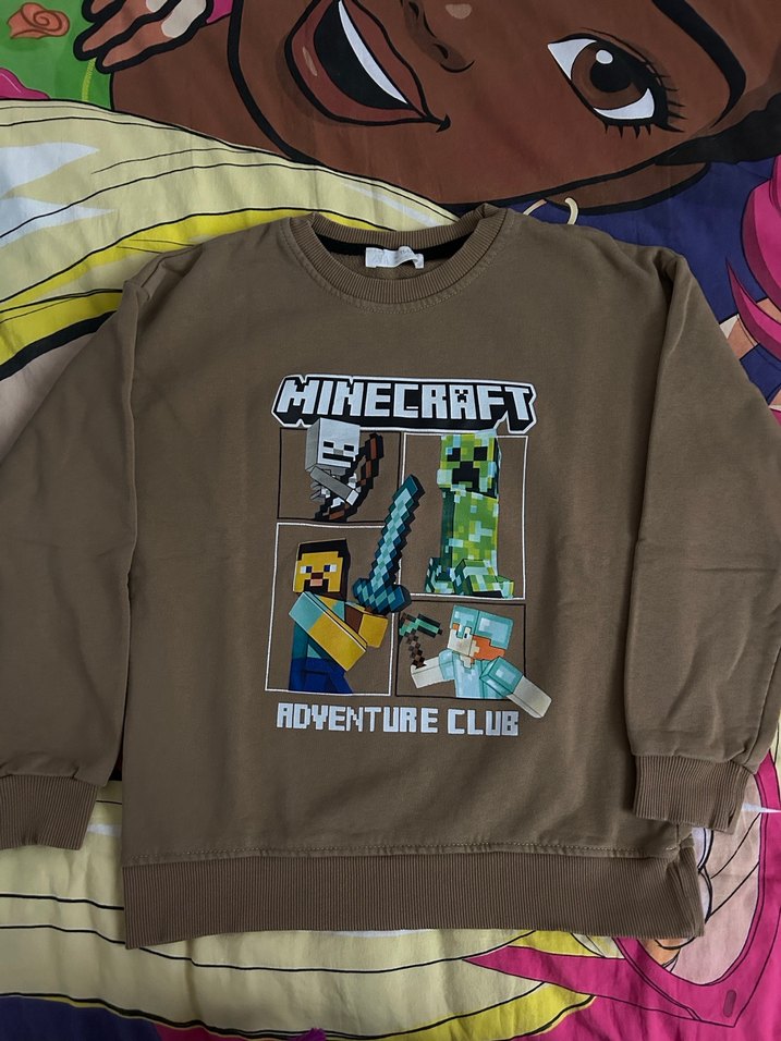 Kahverengi Minecraft Baskılı Erkek Sweatshirt