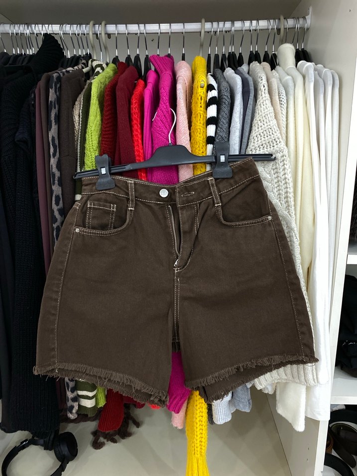 Kahverengi Mini Bağlamalı Kot Şort