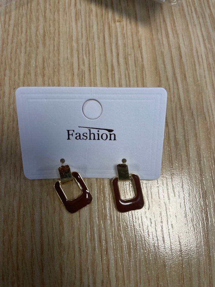 Kahverengi, parlak yüzeyli, tokalı mini kadın küpeleri. Baskılı deseniyle çağdaş ve minimalist tarzda, günlük kullanıma uygun. ✨