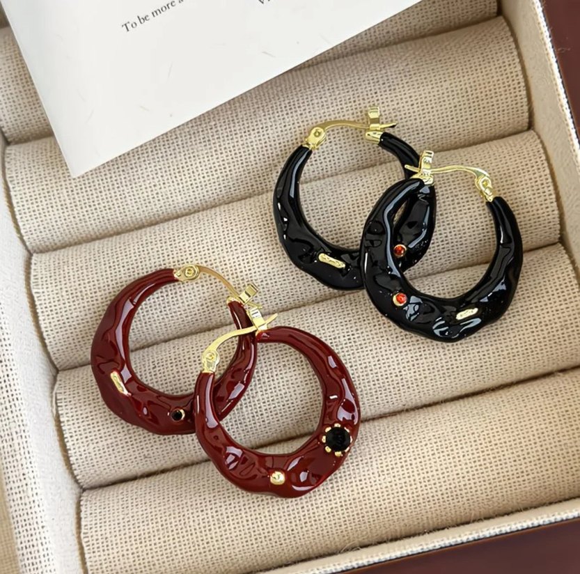 Kahverengi Mini Yılan Desenli Boncuklu Küpeler