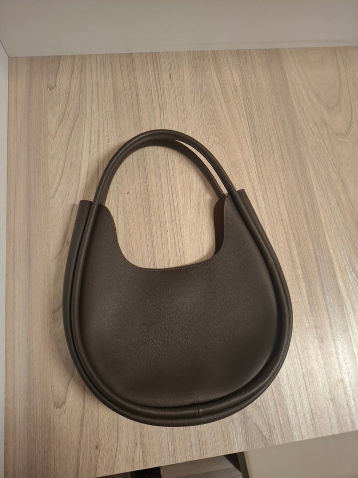 Kahverengi deri, minimalist tasarımlı kadın çantası. Tokalı detaylı, çağdaş stil, günlük kullanıma uygun sade ve desensiz görünüme sahip.