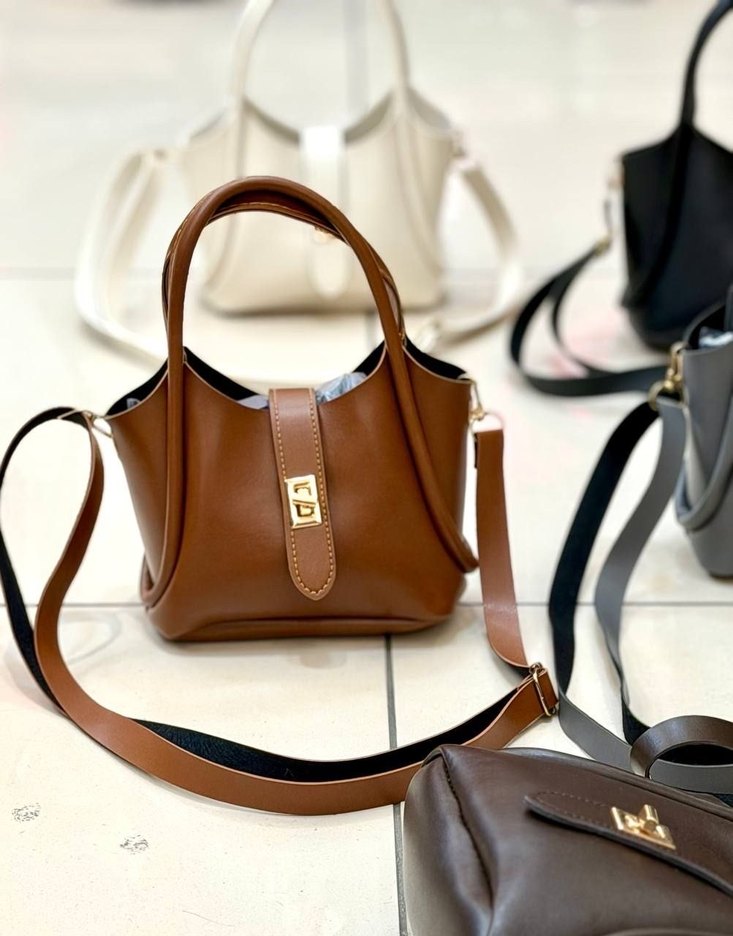 Kahverengi deri çanta, tokalı askısı ve minimalist modern klasik tasarımıyla günlük kullanıma uygundur. Trendy casual stil için ideal.