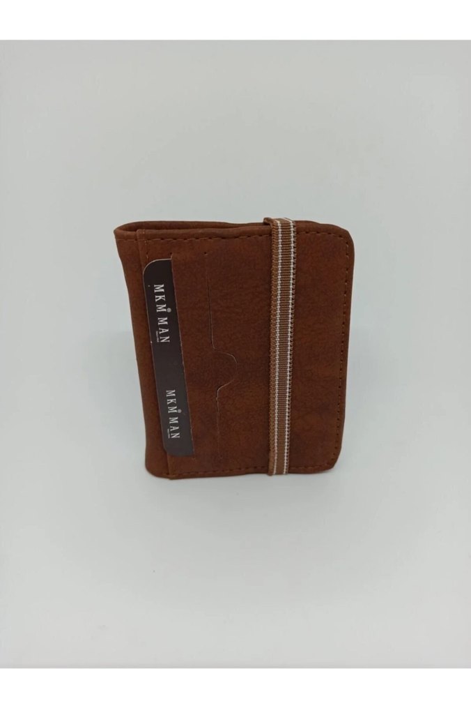 ÜRÜN SIFIRDIR Koyu kahverengi, desen içermeyen erkek cüzdanı, minimalist tasarıma sahip ve elastik bant ile kapanıyor. MKMMAN etiketi mevcut.