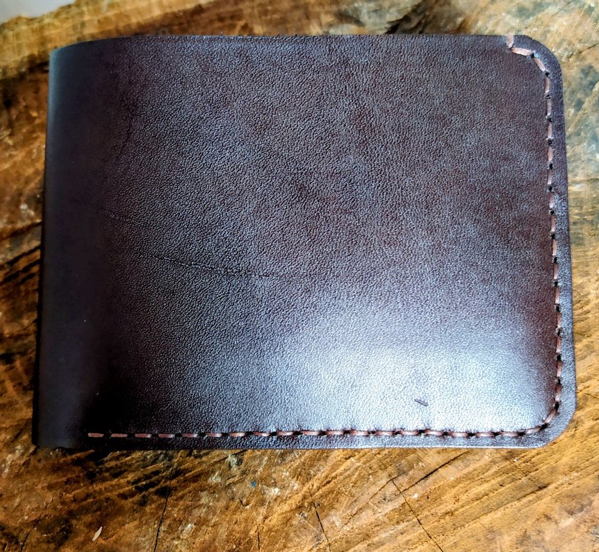 Kahverengi erkek cüzdanı, sade dikişlerle düz ve desen içermeyen yüzeye sahip, minimal ve klasik bir tarz sunar. Hakiki deri tamamen el işçiliği yapılmıştır